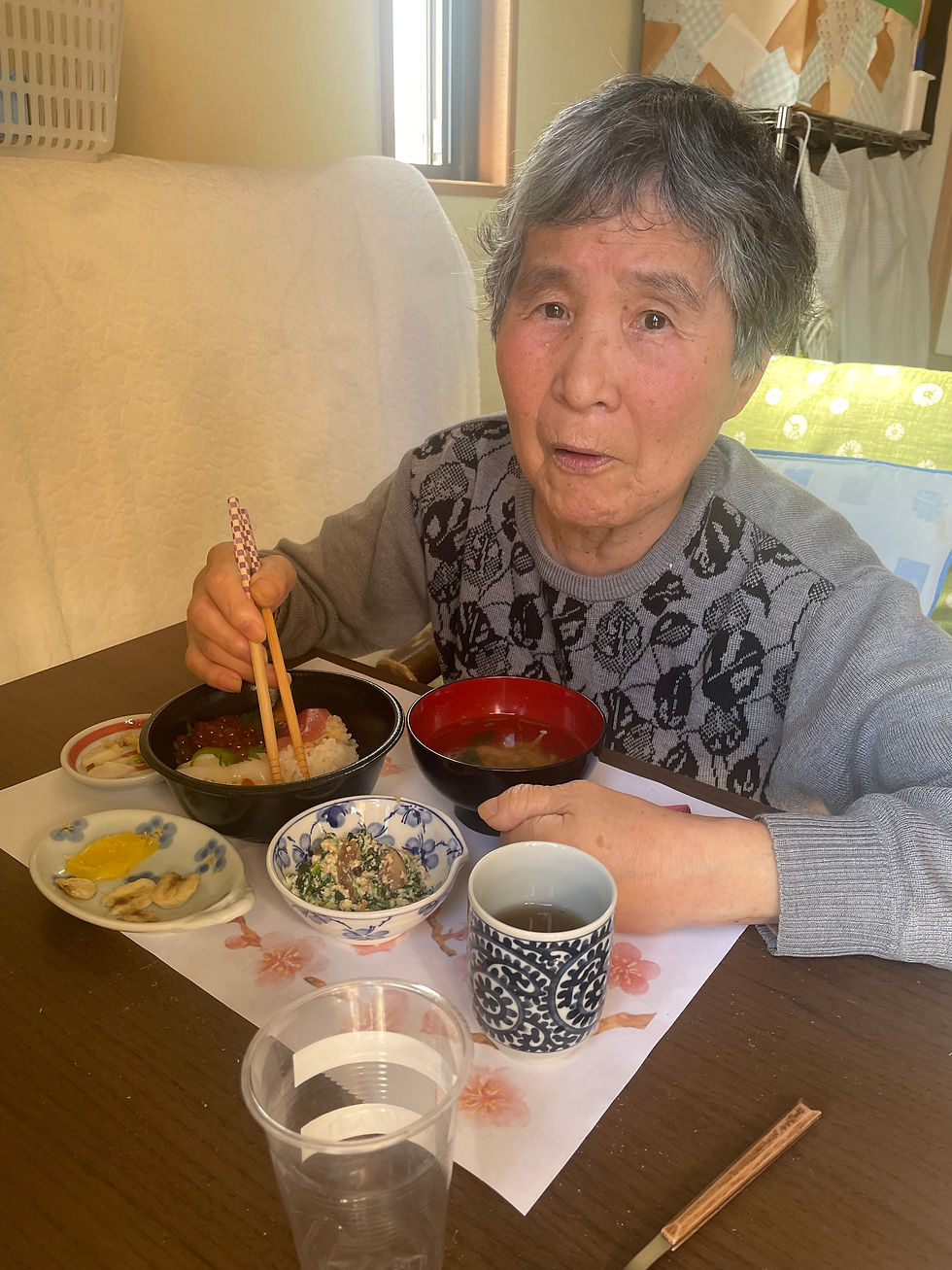 普段出る事がない海鮮丼、「どうしたの、今日は!!✨」「豪華だね~。すごいね~✨」と声が上がり、普段はあまり食べられない方も、ぺろりとたいらげていました。